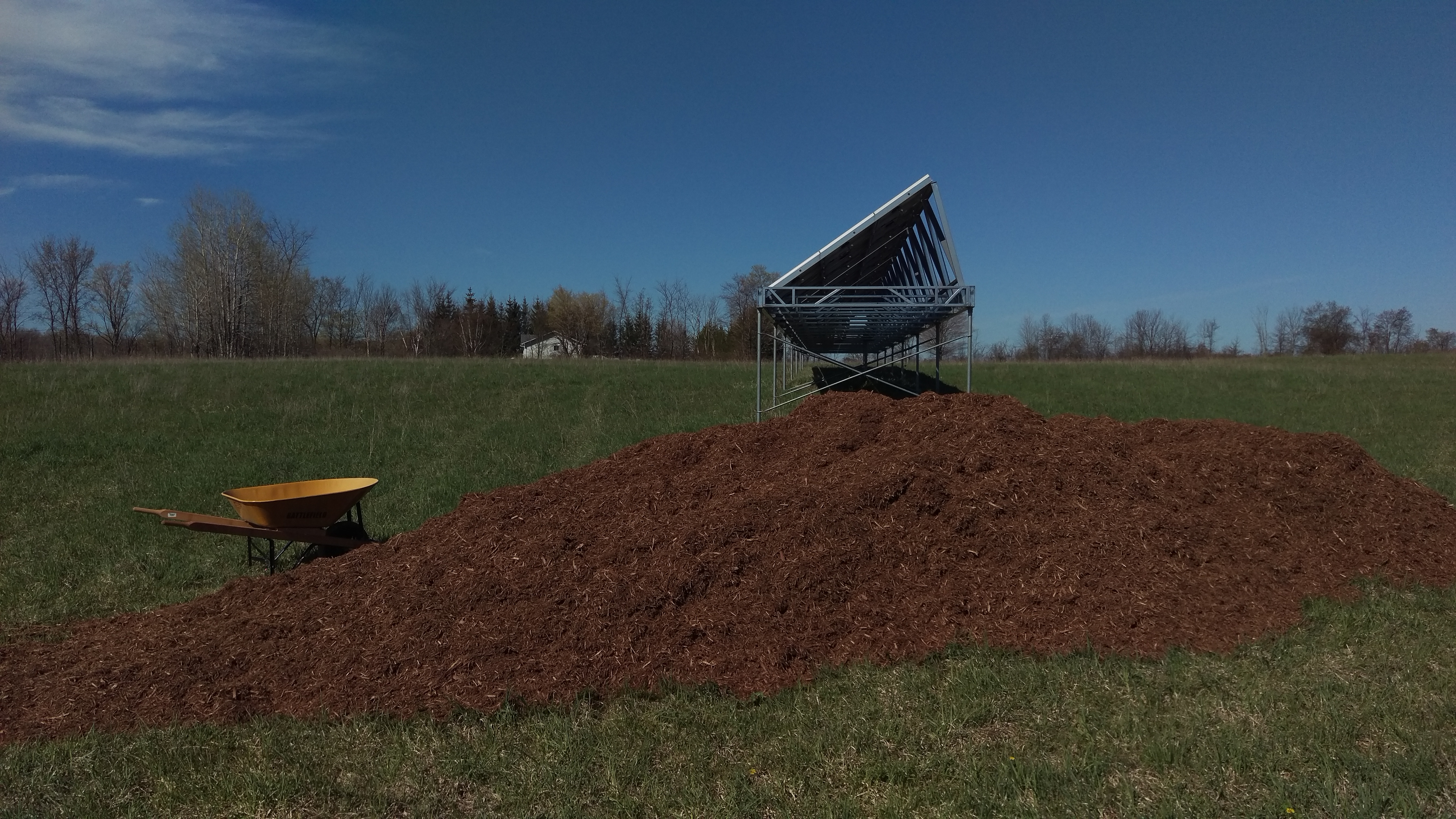 In a follow-up to our exciting news of 3,5oo trees having being planted we wanted to provide you with a brief update of some post-plating work that has been going on at the farm. As you know a walnut orchard requires considerable care in the first several years of growth and so our plan is ensure we give the walnut trees their best chance at survival. A big part of that is controlling weed and grass from encroaching and competing with the saplings by putting down good mulch. Mulch has many uses including water preservation, weed and pest prevention, control soil erosion, and trapping heat as well. This past week be began the mulching process by laying down some red cedar mulch (which has a wonderful aroma) approximately 4-5 inches away from the sapling root in a circle around the tree. Here are some pictures of that process: