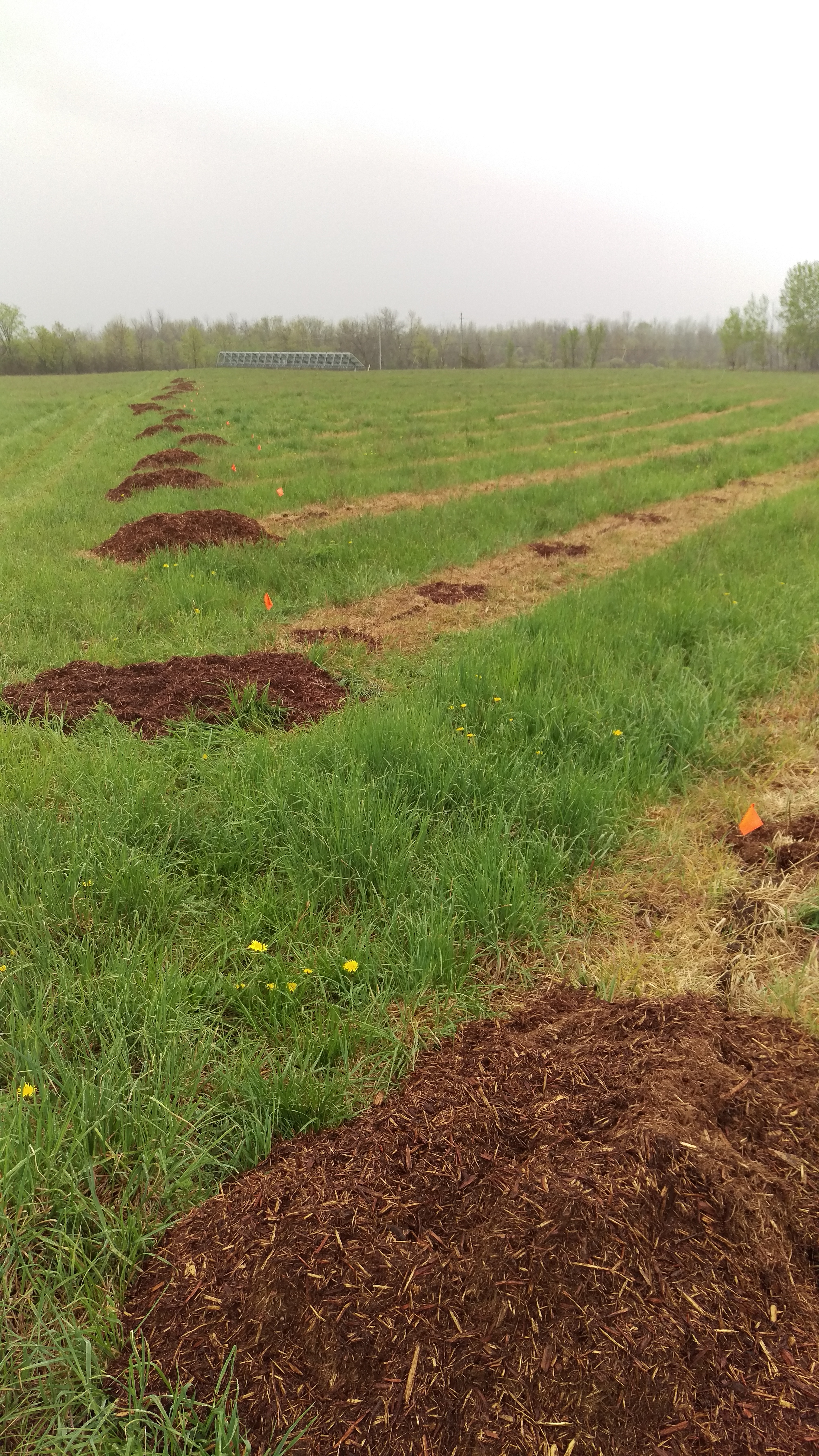 We have placed mulch at each end of the rows to facilitate an easier process for mulching.